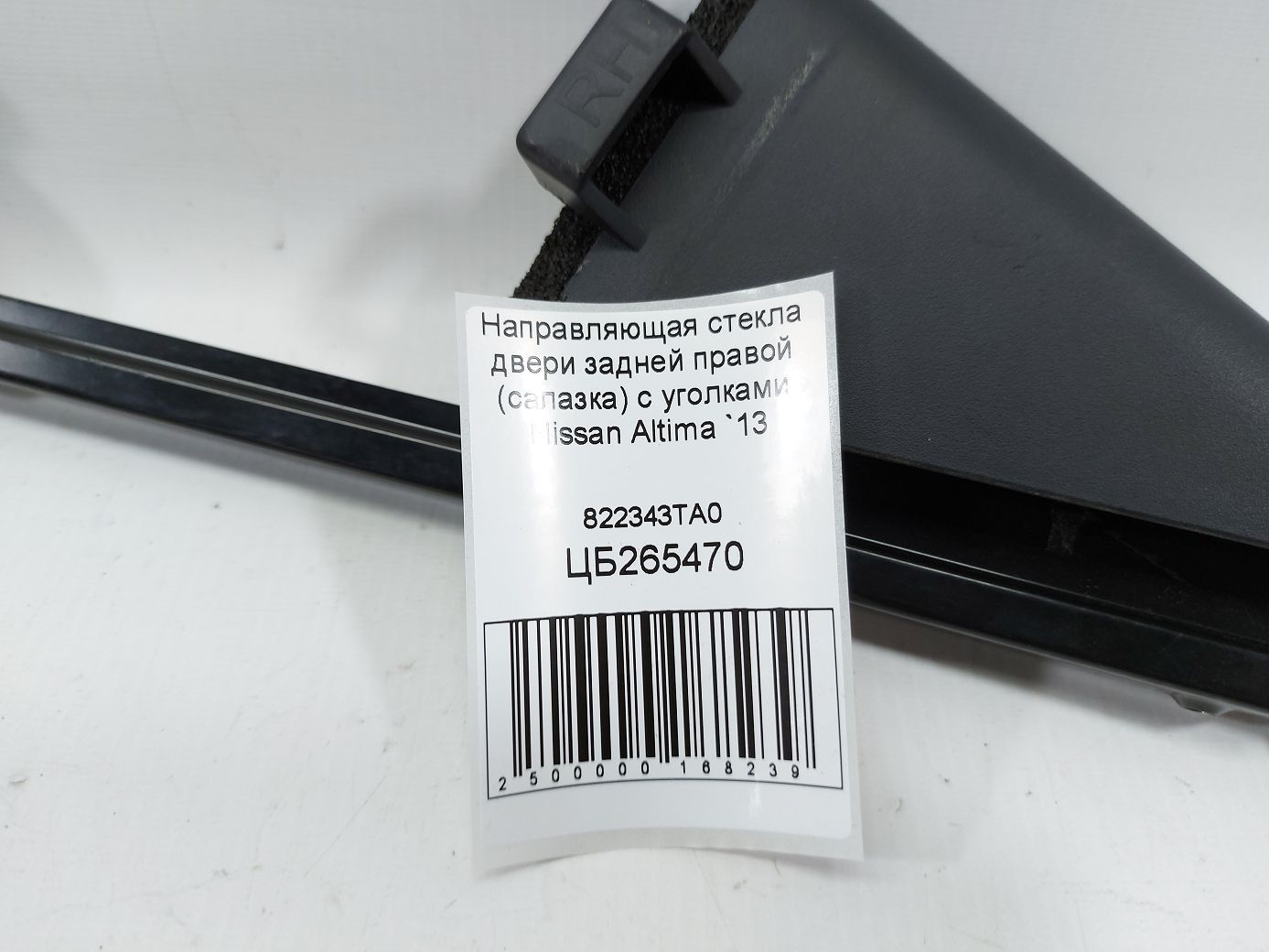 Напрямне скло дверей задньої правої (санка) з куточками Nissan Altima 2013-2018 822343TA0