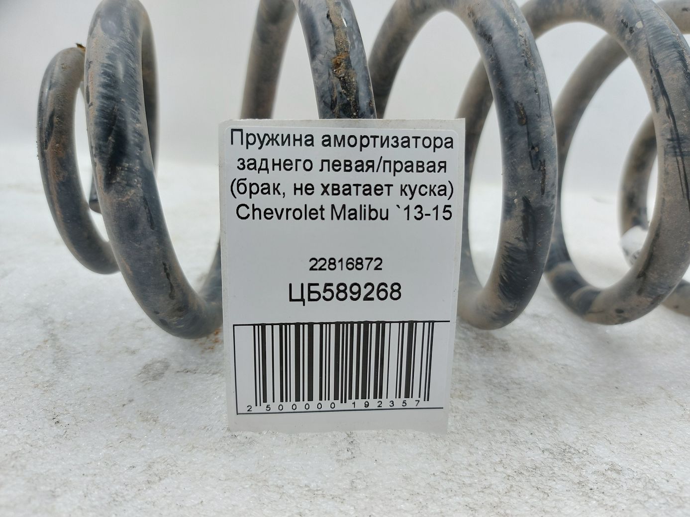 Пружина амортизатора заднього ліва/права (шлюб, бракує шматка) Chevrolet Malibu 2013-2015 22816872