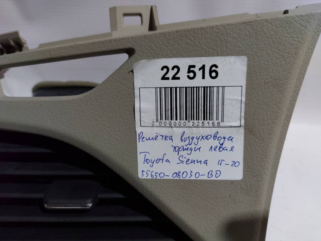 Решітка повітроводу торпеди ліва Toyota SIENNA 2015-2020 55650-08050-B0 Б/У, 55650-08050-B0 купити, оплата частинами
