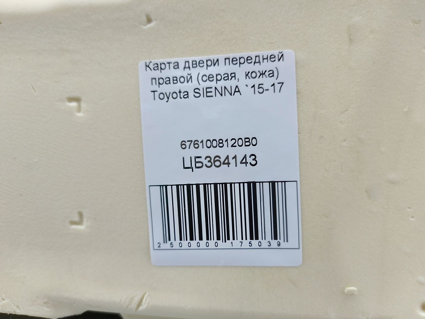 Карта двери передней правой (серая, кожа) Toyota SIENNA 2015-2017 6761008120B0 Б/У, 6761008120B0 купить, оплата частями