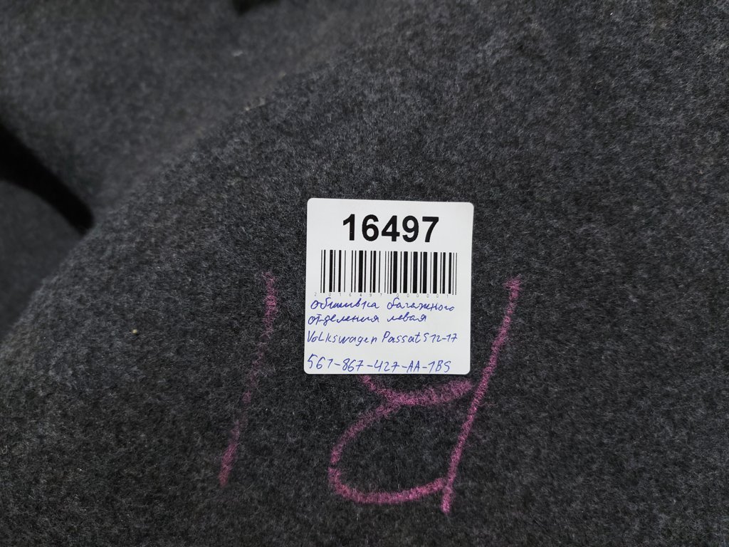 Обшивка багажного отделения левая Volkswagen Passat S 2012-2017 561867427AA1BS Б/У, 561867427AA1BS купить, оплата частями