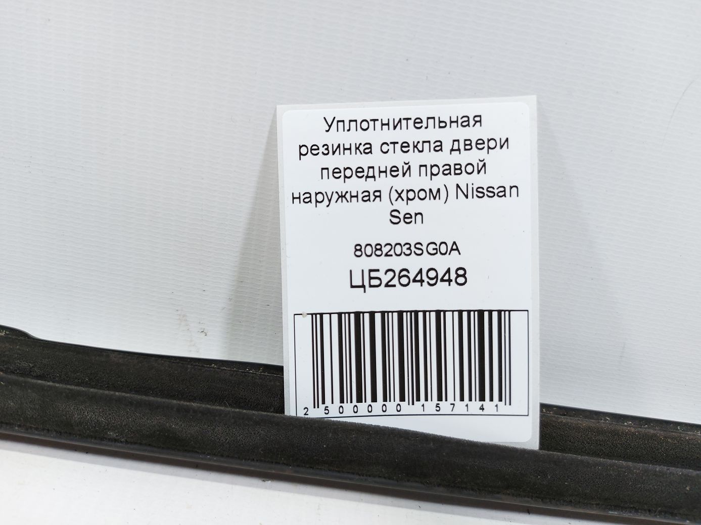 Уплотнительная резинка стекла двери передней правой наружная (хром) Nissan Sentra 2013-2019 808203SG0A Б/У, 808203SG0A купить, оплата частями
