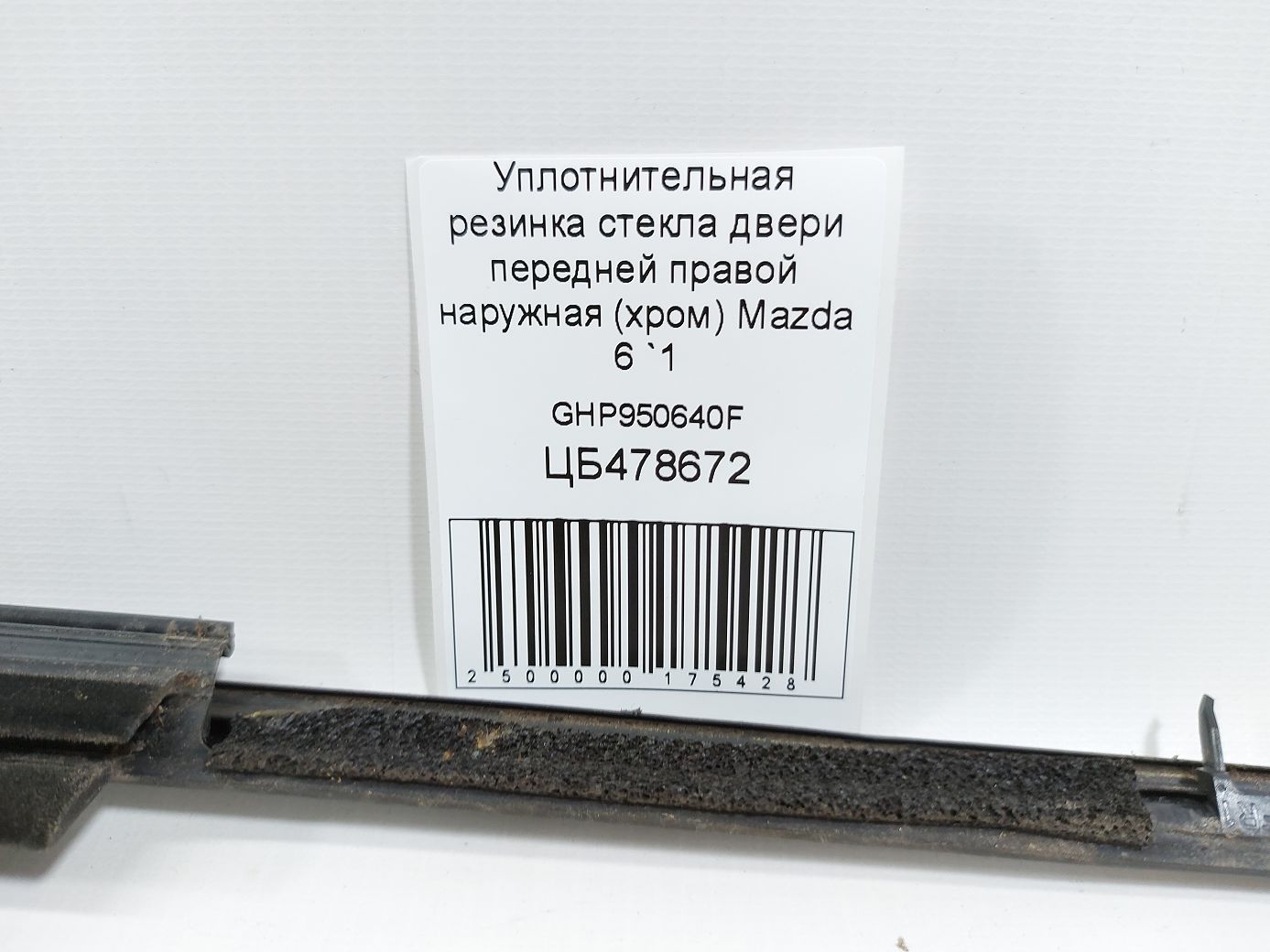 Ущільнювальна гумка скла двері передньої правої зовнішня (хром) Mazda 6 2014-2021 GHP950640F Б/У, GHP950640F купити, оплата частинами