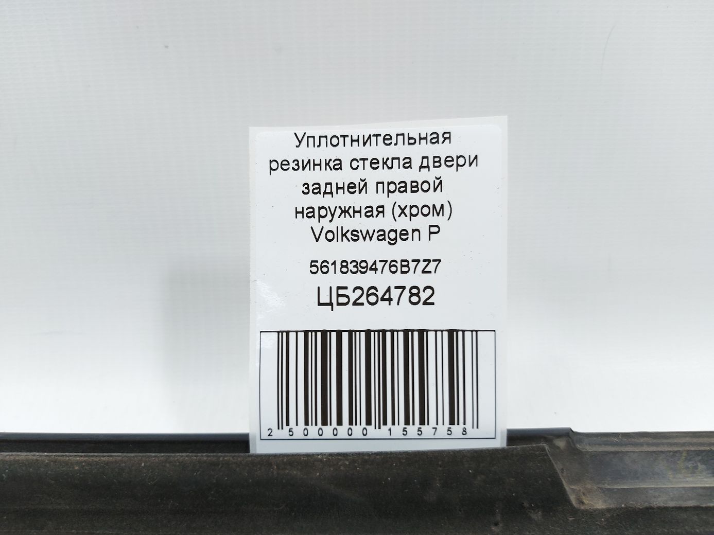 Ущільнювальна гумка скла двері задньої правої зовнішня (хром) Volkswagen Passat S 2012-2019 561839476B7Z7 Б/У, 561839476B7Z7 купити, оплата частинами